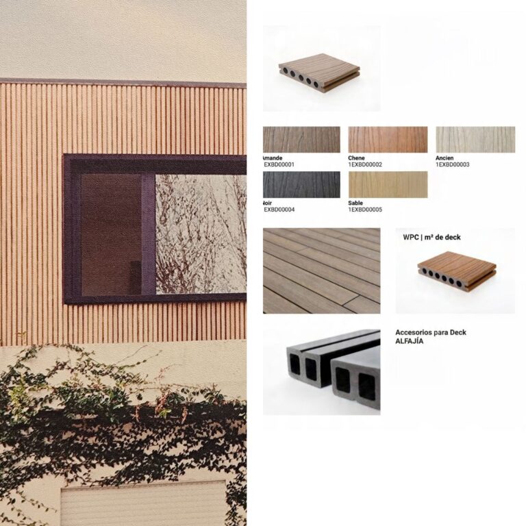Es un revestimiento decorativo innovador hecho de una mezcla de fibras de madera y polímeros plásticos reciclados, combinando la belleza cálida de la madera natural con la resistencia y durabilidad del plástico, siendo ideal para paredes interiores y exteriores por ser resistente a la humedad, insectos y cambios climáticos, y fácil de instalar y mantener.